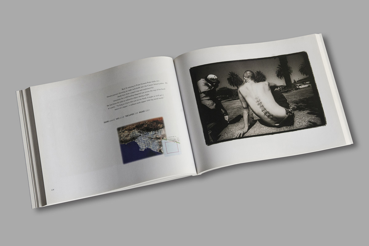 Chance Encounters is a system-driven photographic sampling project controlled by a map gridded into 5,151 quarter-mile squares that encompass all of urban Los Angeles County. McCulloh begins each day of photography by pulling chance coordinates that select one random quarter-mile square. The artist then travels to that quarter-mile square with a single camera and 18mm wide angle lens, speaking “with almost everyone he encounters.” and making more than 20,000 photographs. “McCulloh’s working method avoids pitfalls by adopting the Dadaist strategy of leaving things to chance,” writes Los Angeles Times art critic William Wilson. “He selects areas at random, spending a day shooting whatever he finds – beach, slum or riverbed slime. A traveling exhibition of Chance Encounters was curated by California Museum of Photography director Jonathan Green.