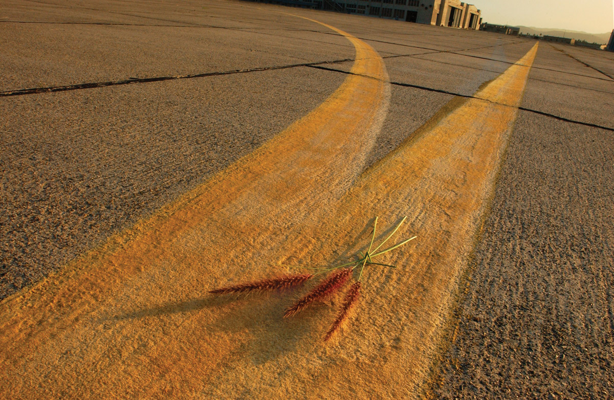 I picked three plumes from the clumps of grass at the runway edge. I used a stray strand to tie the feathery wisps together. I laid the grass in the center of the jetway and sat there in silence. A slight wind rocked the grass back and forth.