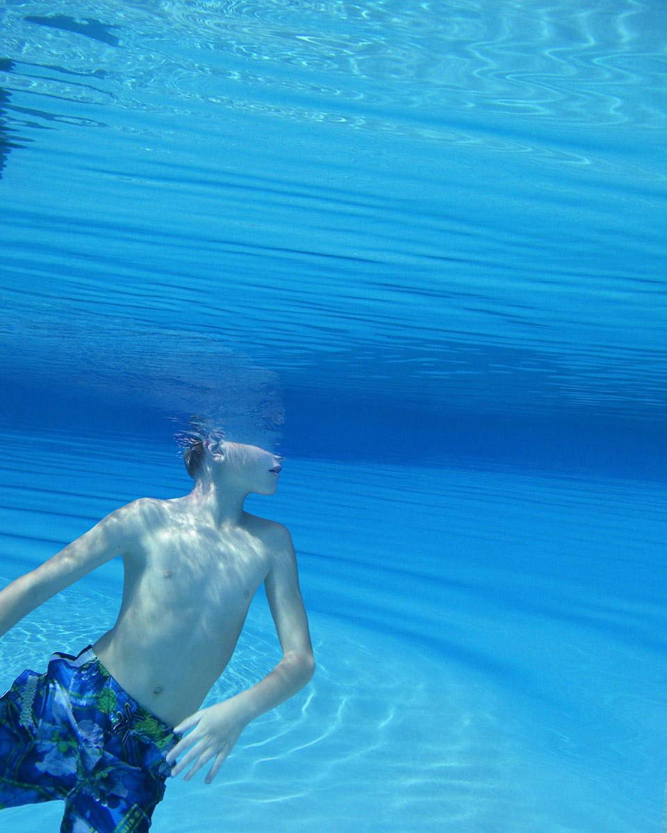 When Kevin left the camera to me in his will, it seemed changed. Sixty surfers paddled out and scattered his ashes outside the break at San Onofre. In the years since, I’ve taken the camera into dozens of resort mega-pools—Hawaii, the Caribbean, southern Mexico, Fiji, San Diego, Florida, Las Vegas. I’ve photographed people floating, drifting, suspended between one world and the other.
