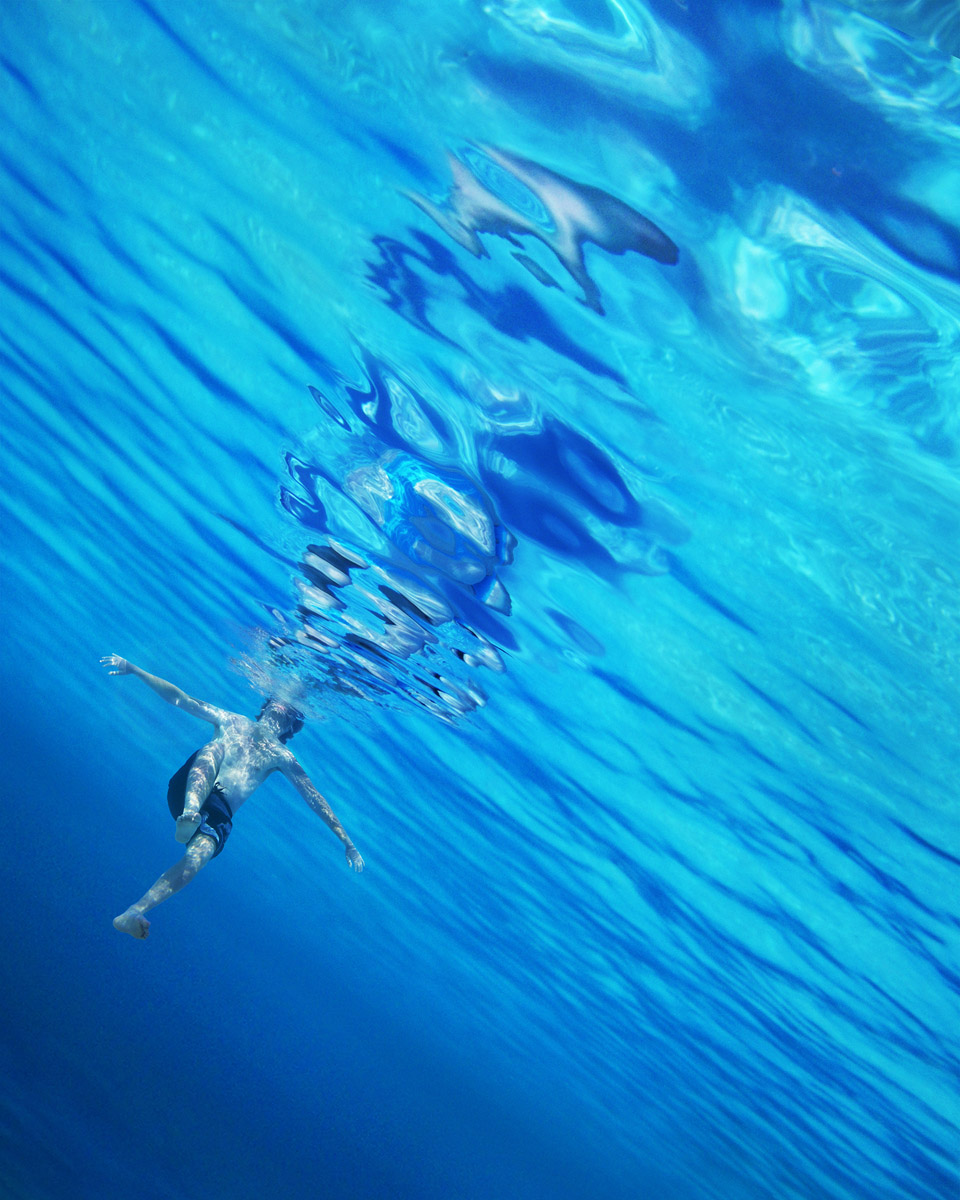 I own a haunted underwater camera. For years, I’ve smuggled it into resort mega-pools around the world, secretly photographing people suspended between one world and the other.