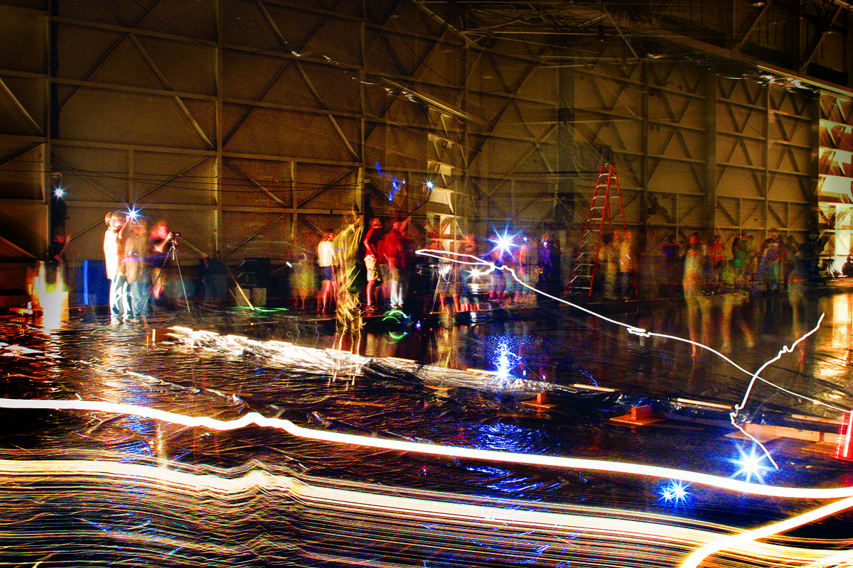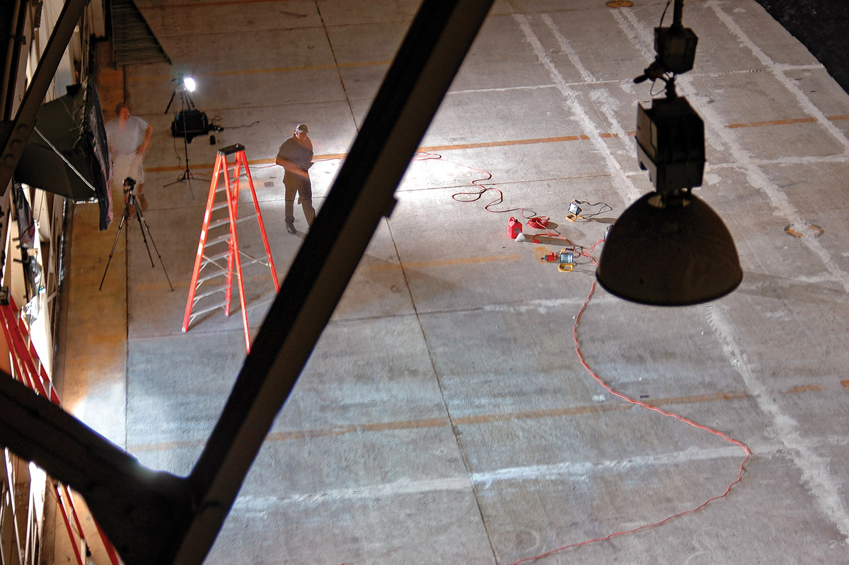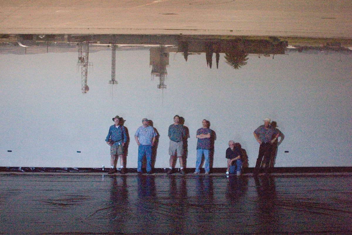 In the spring and summer of 2006, six photographers—the Legacy Project Collaborative—and hundreds of volunteers, artists, and experts spent thousands of hours transforming a Southern California military jet hanger into a gigantic camera. The aim was to make a single black and white photograph—by far the largest ever produced.