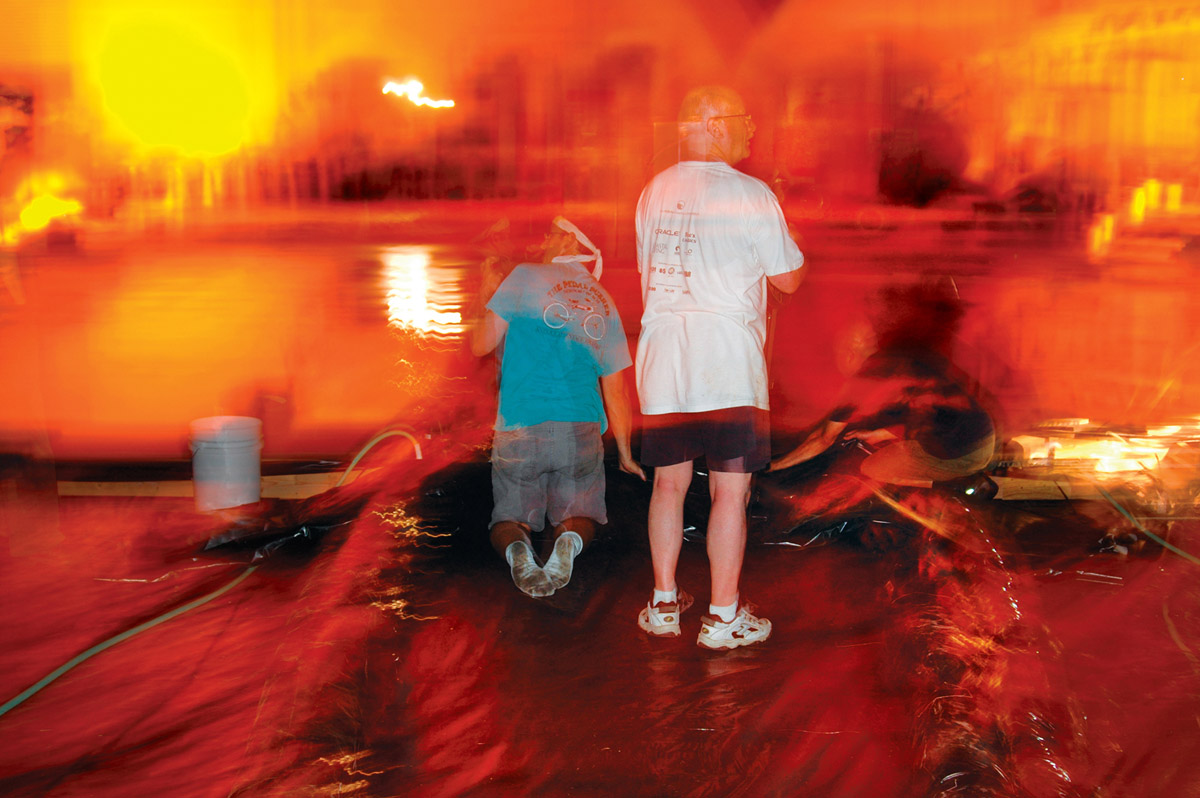 Six photographers masterminded the art undertaking. From left to right in this 20 minute exposure: Mark Chamberlain, Rob Johnson, Jacques Garnier, Clayton Spada, Jerry Burchfield, and Douglas McCulloh.