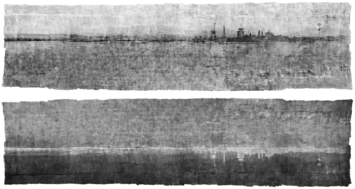 The camera obscura technology and the hand-applied photosensitive emulsion connect The Great Picture to photography’s origins. But within minutes of completion, extensive press coverage transmitted digital versions of the image across the world, and the image was immediately transformed via Photoshop from analog negative to digital positive. Photohistorians, taking note of the monumental scale of the undertaking and dual analog/digital nature of the image, position The Great Picture’s as a monumental marker of the moment when photography moved out of film and into pixels.